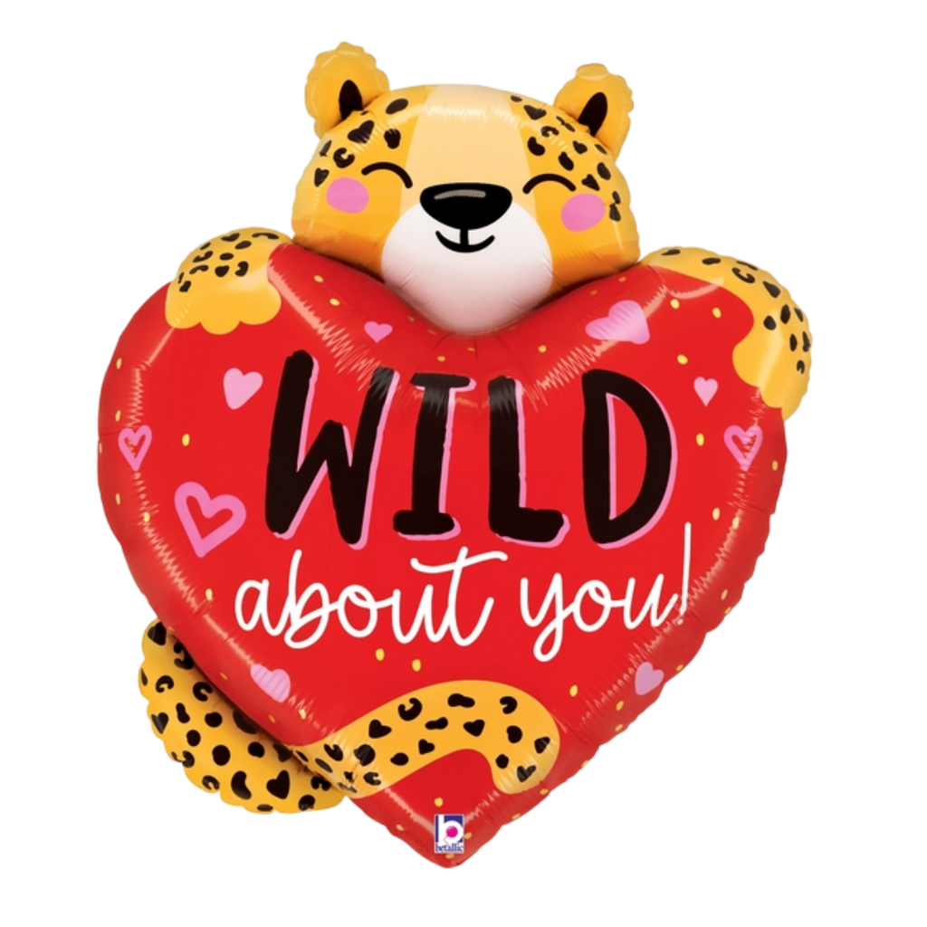 Instead of flowers this year give your loved one a beautiful Valentine's Day. The 29 inch Wild About You Cheetah Balloon features a cute Cheetah embracing a red heart reading "Wild About You".