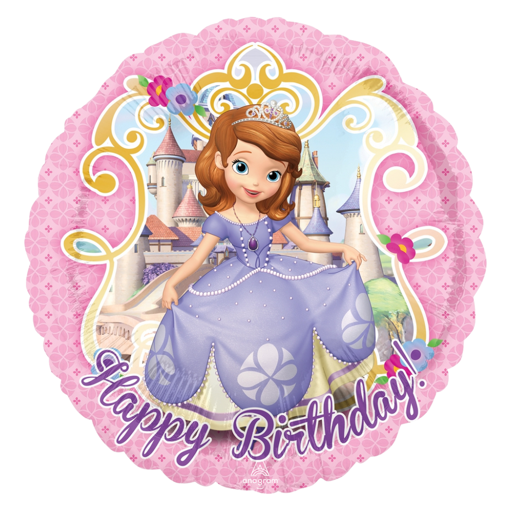 Your princess will love these 17" Sofia the First Birthday Balloons! This cute balloon features Sofia in a beautiful purple dress on a round foil balloon with an elegant pink border. This is a noble addition to your little one's Disney Princess birthday party