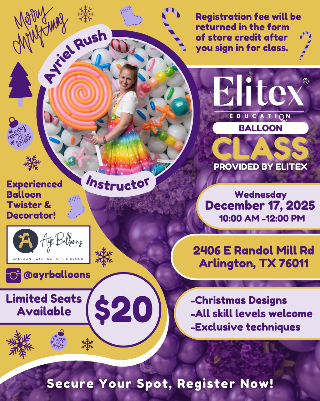 Elitex Education - Christmas Balloon Class With Ayriel Rush | 12/17/25 - 10am-12pm
